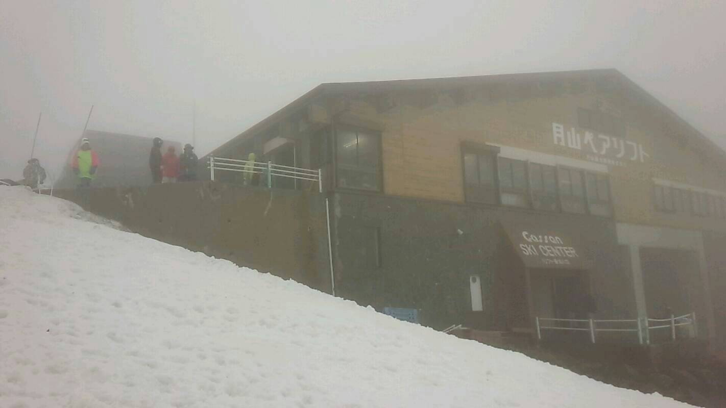 生憎の雨だったが、例年に無い大雪のお陰でリフト乗り場付近まで滑走可能であった。