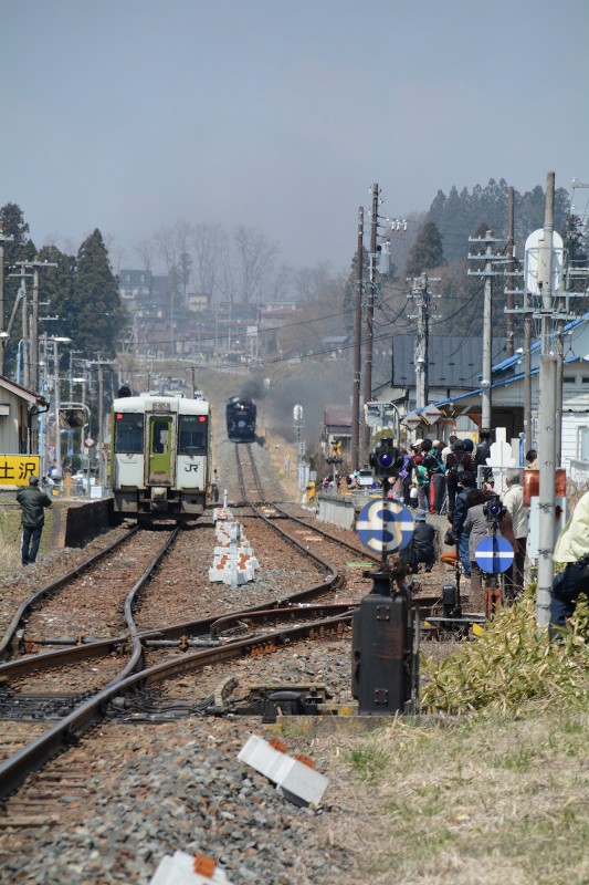 こちらも回送でやはり気動車に牽かれて日詰駅に入線するC58 239・・・