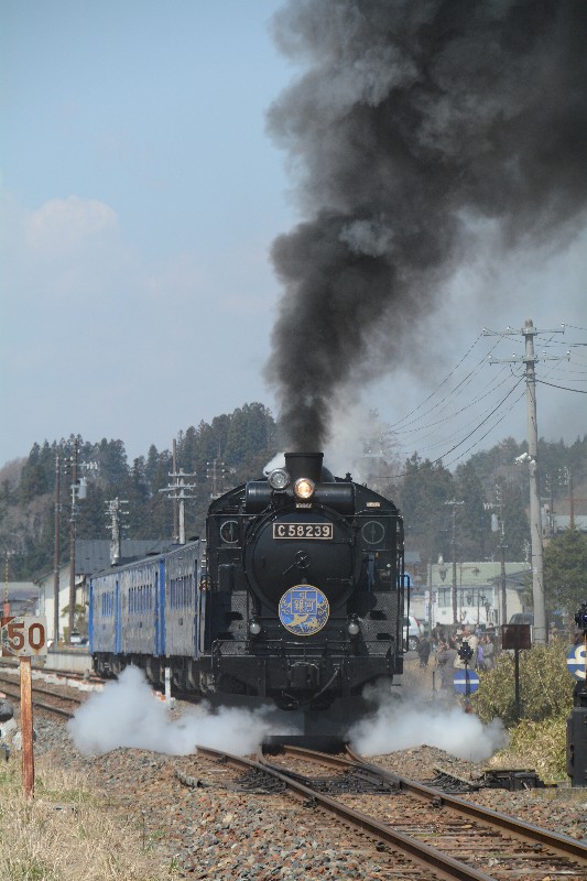 残念ながら自走可能なSL銀河の客車である気動車に牽かれて行くC58 239・・・