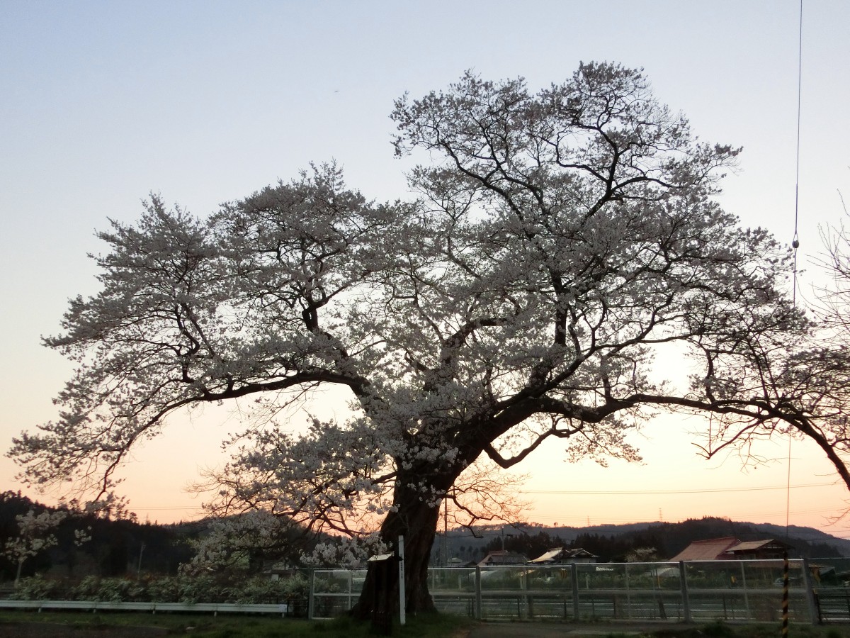 5、夕暮れの「北館桜」(奥州市衣川区)
