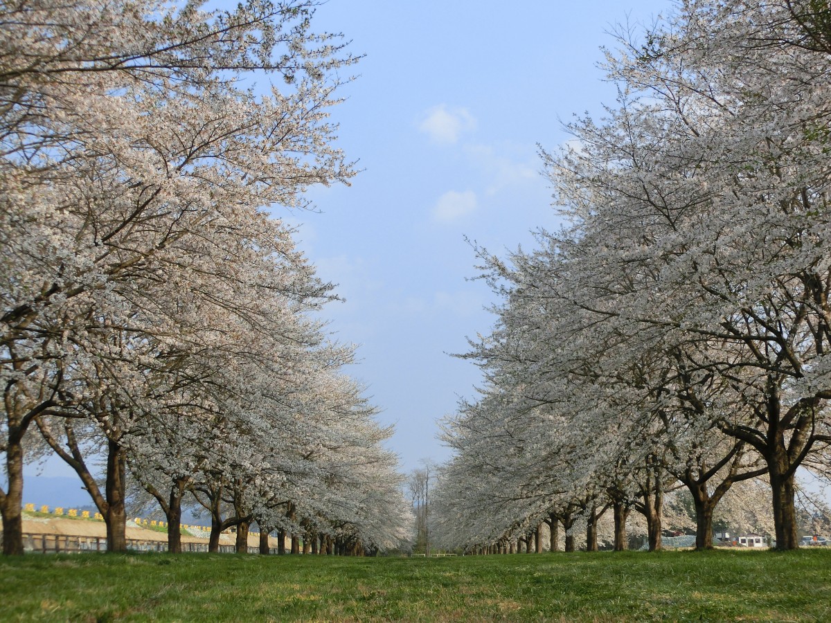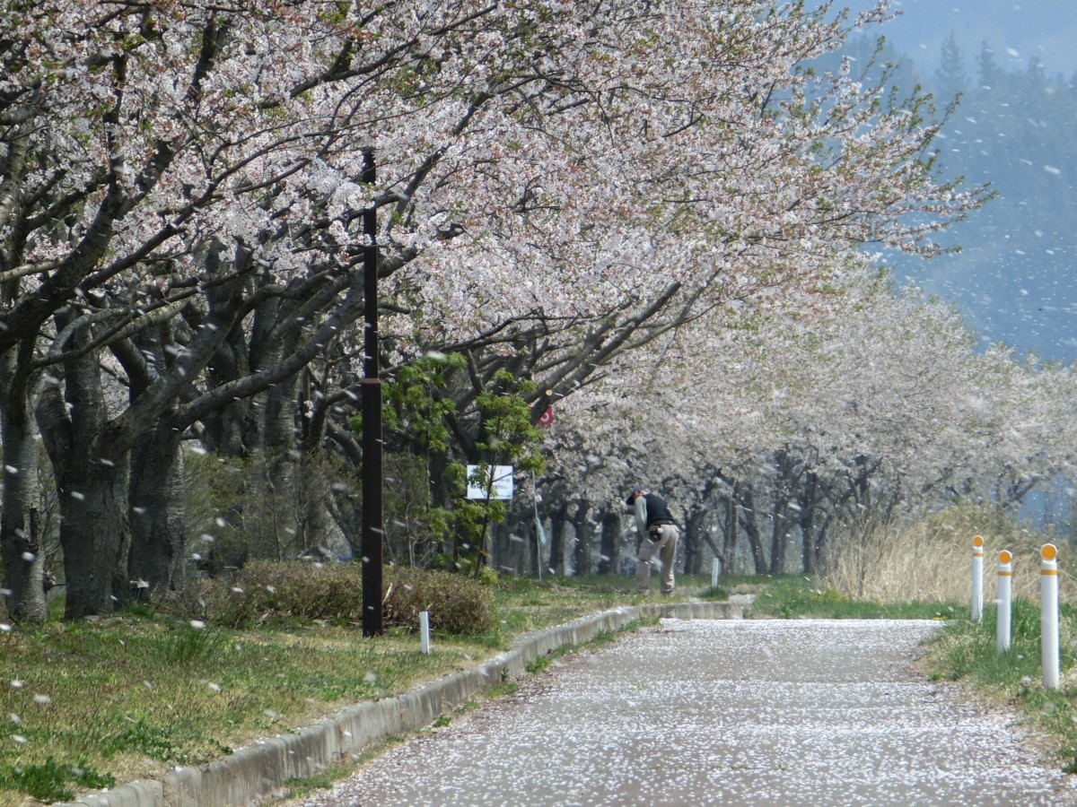1、今年が見納めの磐井川堤防桜並木(一関市)