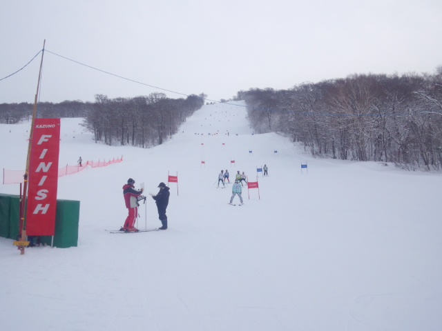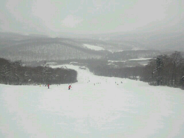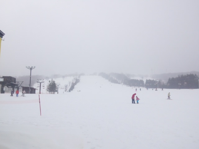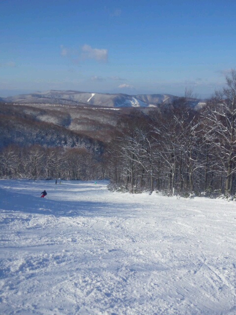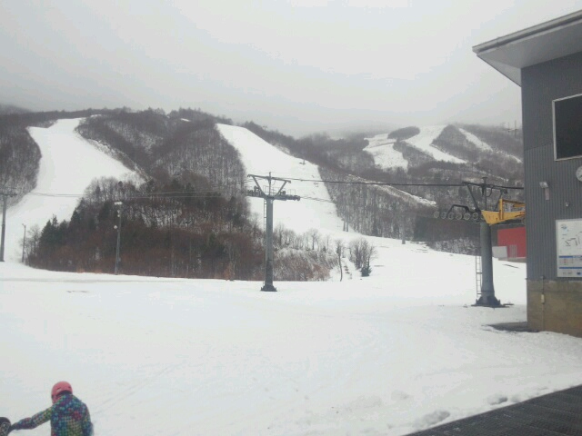 まだまだ雪が薄く至るところに岩や石が出ていますが、昨日滑った秋田県のスキー場よりは、昨夜の降雪も手伝ってかなり条件が良かったですね~。