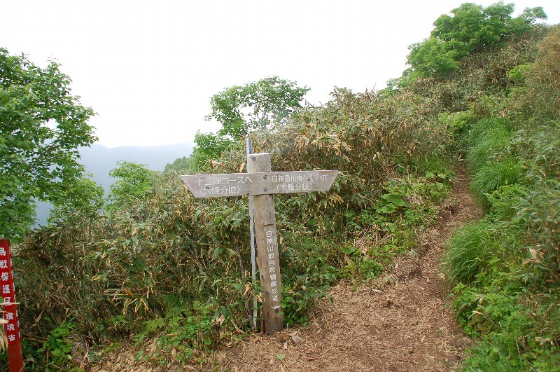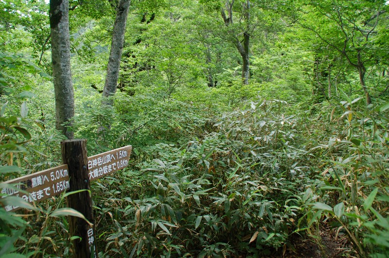 (下から2枚目の大峰分岐の写真の後ろに見える笹薮が正にその場所です)