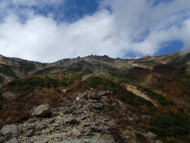 樹林帯の続く沢沿いは紅葉がキレイですが・・・すでに見ている余裕がありません。