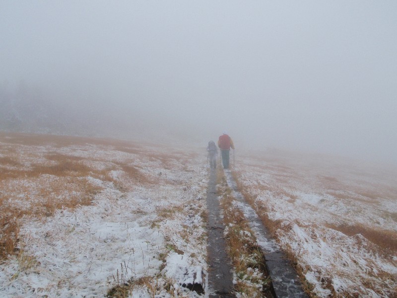 登るにつれて雲底が近づき、そのうちに雲の中へ入ってしまいました。