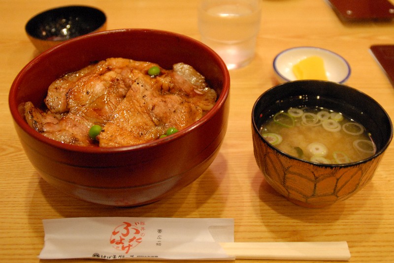 時間的な都合から駅に隣接するエスタ帯広西館にあるぶたはげと言うお店の「豚丼」(¥895)を食べました。