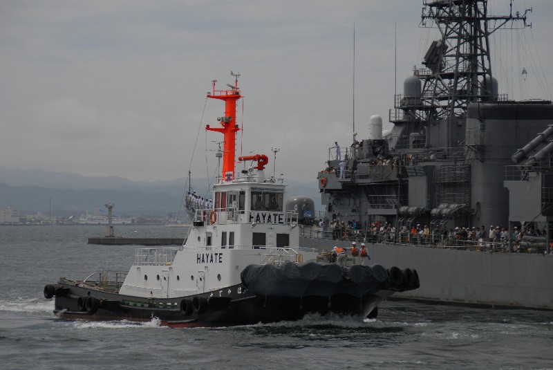 「うみぎり」の出航をサポートしていた補助汽船の「はやて丸」がこちらに進路を変更して来ます。