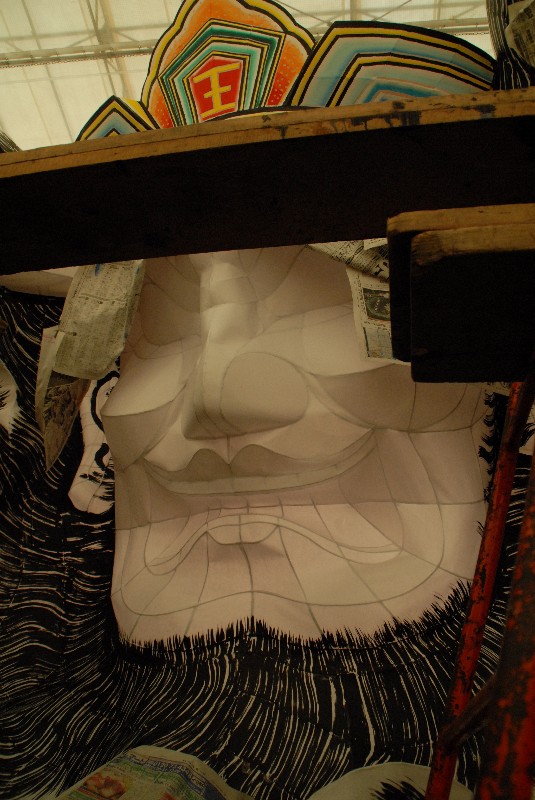 ちょうどねぶた師の穐本和生先生をお見かけしましたので、無理をお願いしてねぶた小屋の中に入れて貰いました。ホントにありがとうございました。