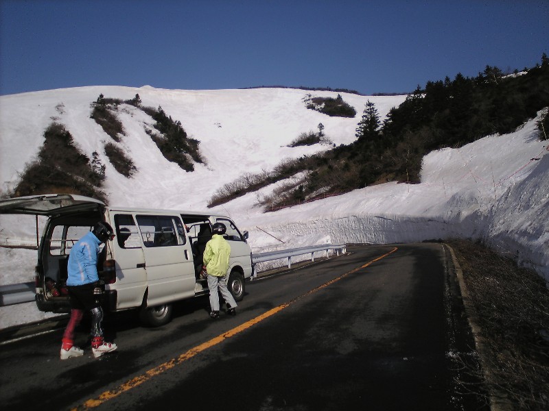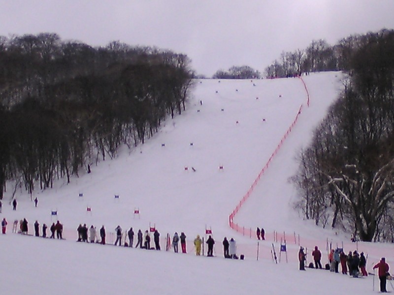 それで結局1時間遅れで中学生がスタート。引き続き一般女子もすぐに終わりました。いよいよ一般男子がスタートしたのですが・・・10人目くらいで濃いガスが掛かってしまいました。最初は3旗門以上見える状況で何とかレースが継続出来るようなレベルでしたが・・・何故かレース中断。しかし一向に天候は改善されず・・・改善されるどころか更に悪化して行きました。そしてガスが一向に晴れないことから主催者側は何とかレースを完了させたいのか、旗門にマーキングを施し前走者そ一人出走させました。「おいおい!元々出場者の安全を考えて中断したんじゃないのかよ?」ガスが晴れないからと言って、暫定策で再開させる方法を考えるとは・・・大会を運営する上で出場者のことを全く考えていない結果の流れでした。まあ前走者からの報告で滑走は厳しいらしく・・・しかしその後更に10分以上待たされてからやっとのことで一般男子の部中止がアナウンスされました。午後3時頃だったでしょうか・・・結局インスペ終了後から3時間以上もトイレなどが無いスタート地点で寒さの中を中止連絡のみを待っていたことになります。
